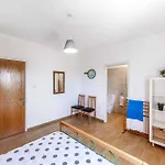 Bathroom facilities also include a separate toilet, a shower, and a washing machine. Towels are included for added comfort.